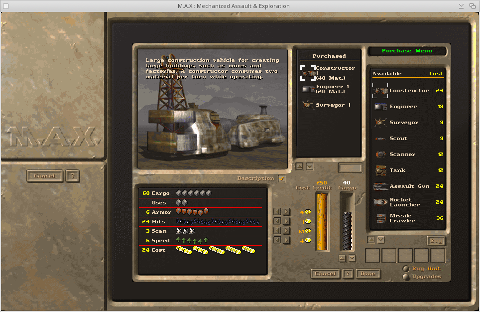 | Description: | M.A.X. Port is an SDL-based runtime executable for the 1996 DOS game M.A.X.: Mechanized Assault & Exploration | |