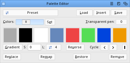- Palettes can be saved in IFF ILBM, RGB32, LoadRGB4, and LoadRGB32 formats