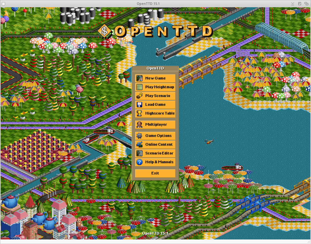 - libfluidsynth to support MIDI music - Network work, you can download online content and play multigame online. - Game is 100% playable !! included OpenSFX, OpenMSX and OpenGFX but you can download new content online. - 2D render and 3D opengl are fully supported - Update to 15.0 with fixes somes specific system codes - You need 1 Go RAM minimum