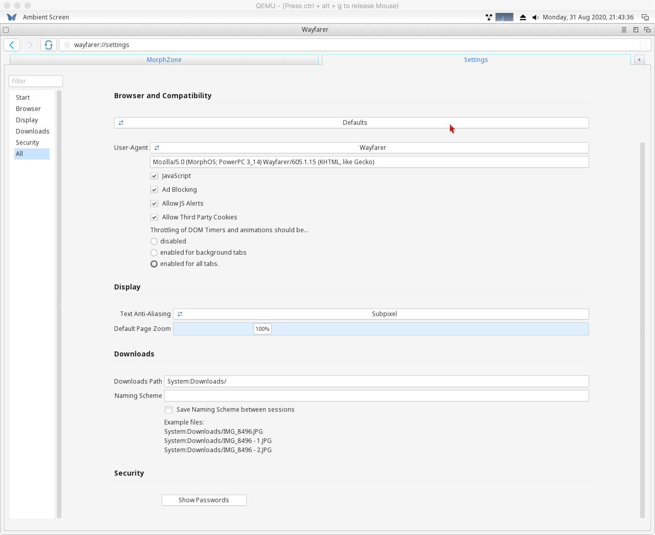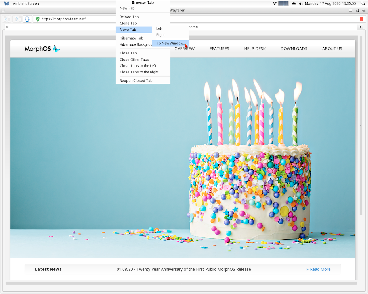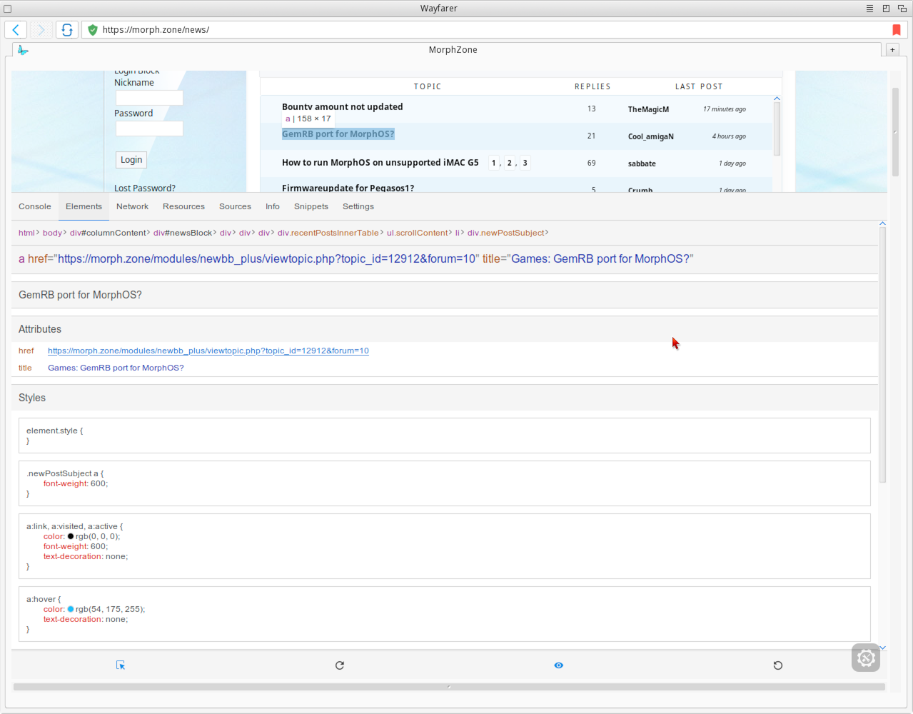 Wayfarer is the latest web browser for MorphOS, based on a recent branch of WebKit.