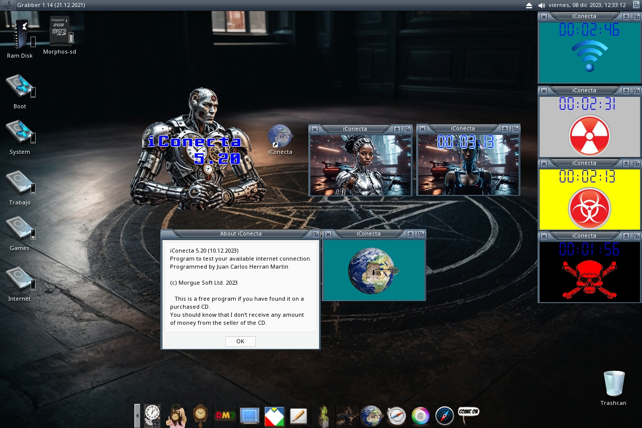 | Readme: | Title: iConecta Version: 5.65 Kind: Internet Plataform: MorphOS Requeriments: charsets.library Description: A little and easy program to test your Internet connection. This program isn't one spyware, monitoring or keylogger malicious software only check if your computer is online or offline to avoid bad surprises browsing or downloading. This is useful when you use a movilphone or wifi connection and you are writing an e-mail or writing a form and you give Send, without connection your work may be lost.
