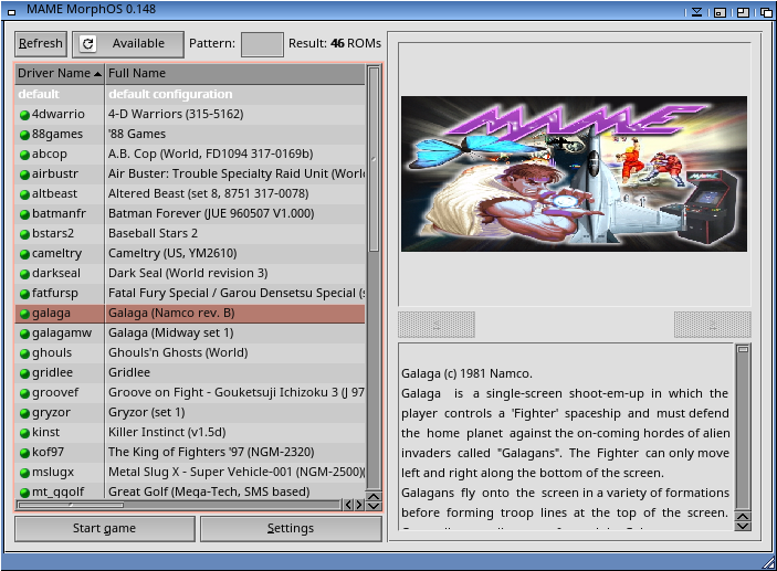 This is a port of MAME 0.148 for MorphOS.